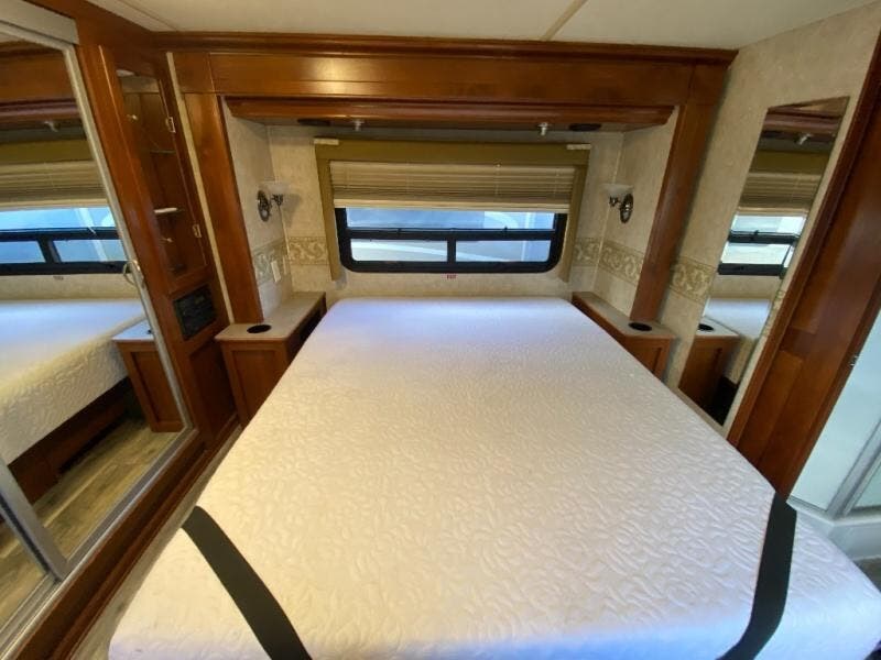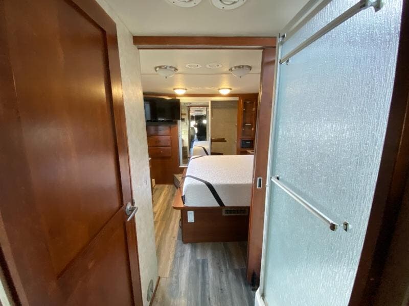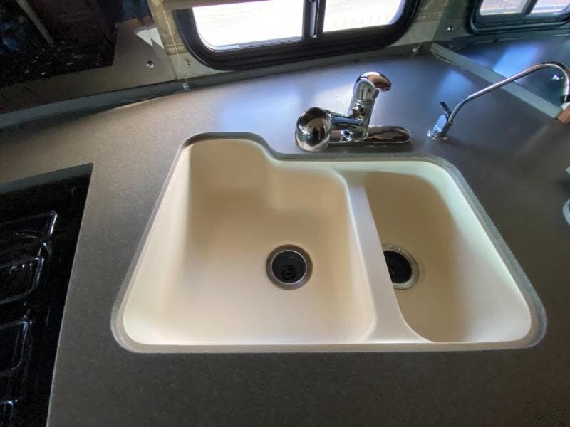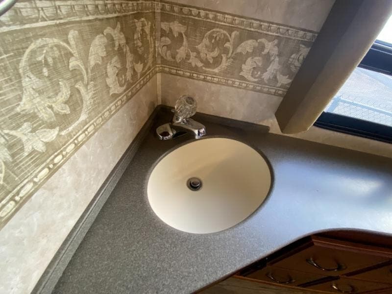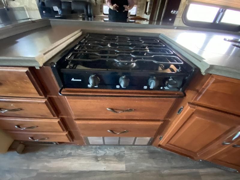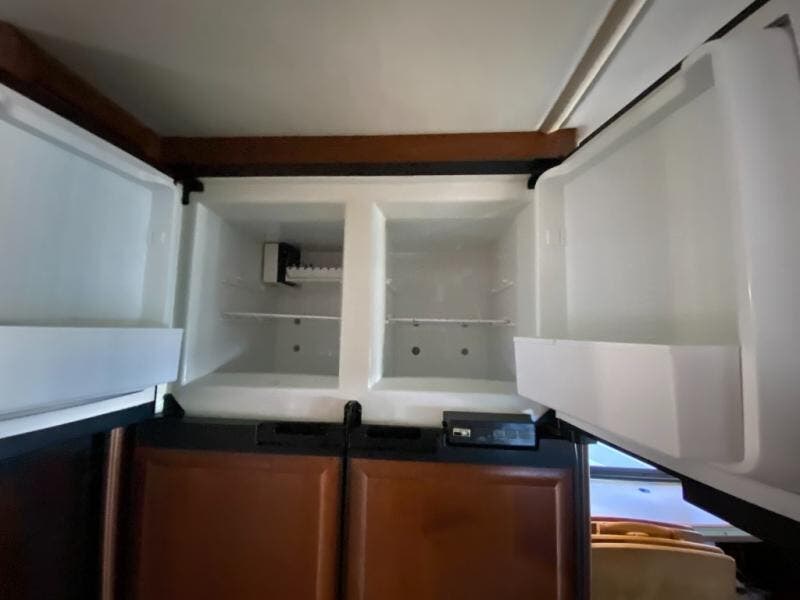Triple Slide Discovery w/Rear Queen Bed Slide, Nightstands, Wardrobe, TV Cabinet, Vanity w/Sink, Angle Shower, Private Toilet Area w/Lav., Side-By-Side or 4-Door Refrigerator, Booth Dinette w/Table Extension & Chair & J-Lounge Slideout, Overhead Storage, Sofa Bed or Opt. Sofa Sleeper/3 Burner Range & Double Kitchen Sink Slide, TV Above Cab Area & Much More.