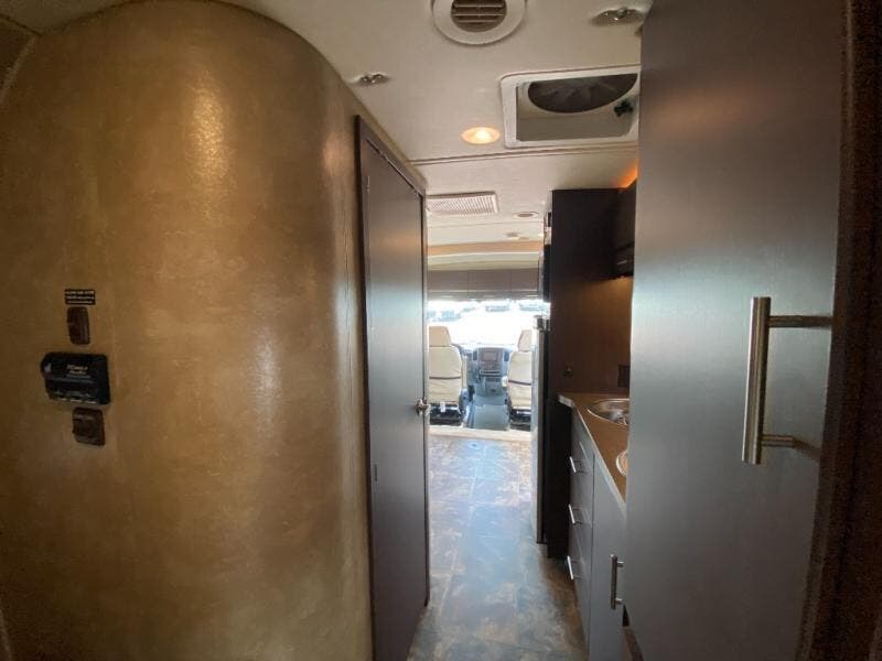 Winnebago Via Class A Diesel Coach w/Double Slideouts, Rear Queen Bed Slide, 22" LCD TV/Storage, Wardrobe, Bath w/Corner Shower, Toilet & Sink, Round Kitchen Sink, 2 Burner Cooktop, Refrigerator, Comfort Sofa Sleeper Slideout w/Movable Pedestal Table, 26" TV in Living Area and More!