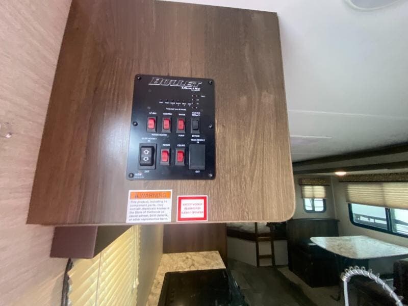 Whether you're spending your time soaking up the sun at the edge of the lake or trekking into the forest on a hunt for fresh berries, the Keystone Bullet travel trailer will not only get you to your destination, but it will also keep you happy while you're there. With the most luxury features of any other ultra lite trailer, like the exterior speakers, laundry chute, and LED lighting, the Bullet continues to provide the number one ultra lite travel trailer in America. Because of the contoured shape of the radius front profile on the Bullet, it offers less wind resistance as you tow it along the highway, and when you combine that with the extremely lightweight floor plan design, you get one unit that will help you cut costs when spending money on fuel.