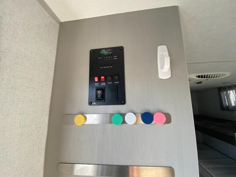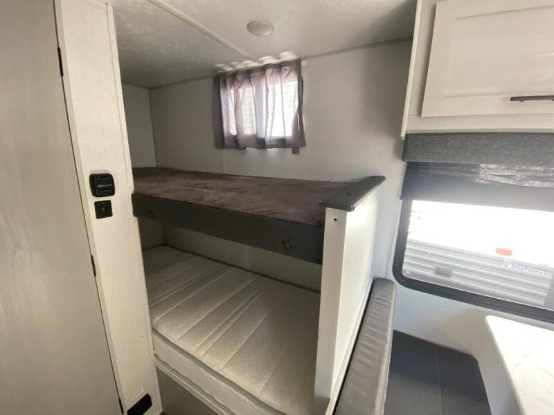 Enjoy this lightweight Wildwood FSX travel trailer for your next family adventure! Your kiddos will love the bunk beds in the rear corner for playing as well as sleeping. The convenient rear corner bathroom which features a standard shower and toilet will be handy at night, especially if your children are small, so that there will be no running out to the campground facilities in the dark! Up front, the queen-size bed provides you with a comfortable place to sleep and a convenient storage space with access underneath. When it's time to enjoy the outdoors each day, you will appreciate the exterior storage for all of your outdoor toys and gear, and the overhead 12' electric awning with LED lights is great even on days where there is a light sprinkle outside.