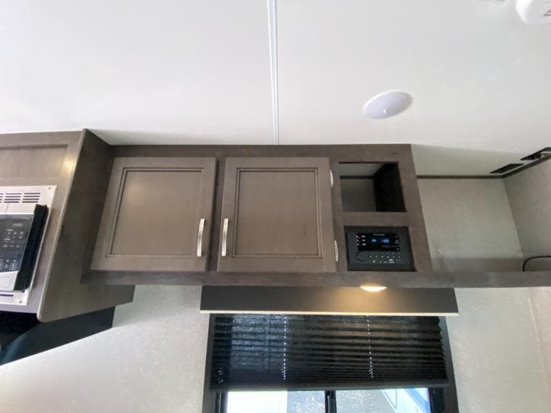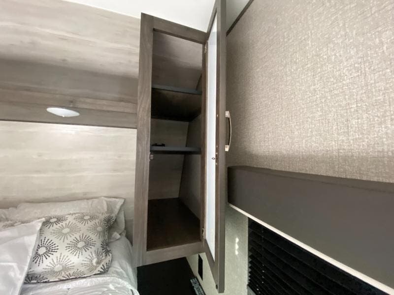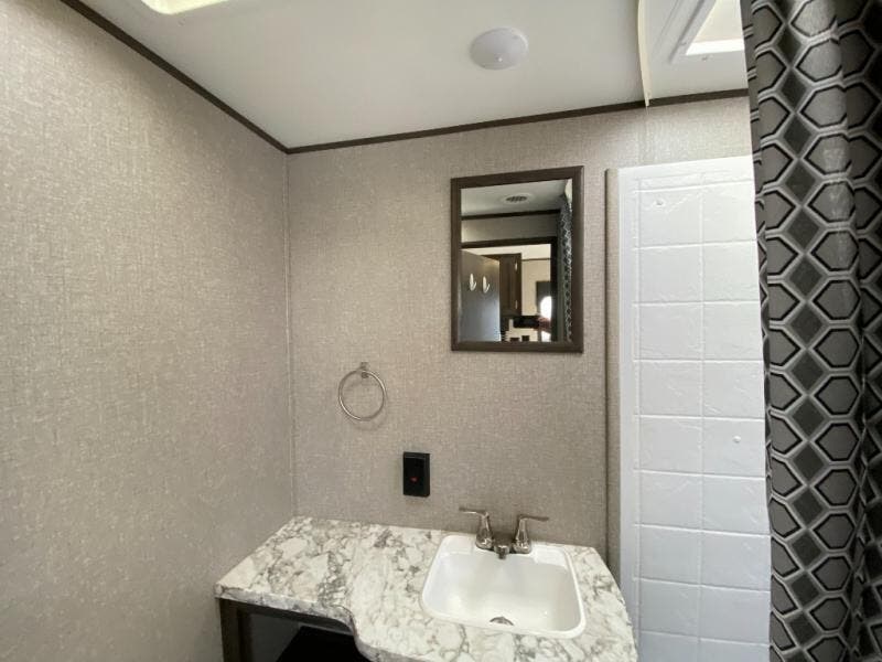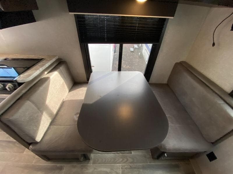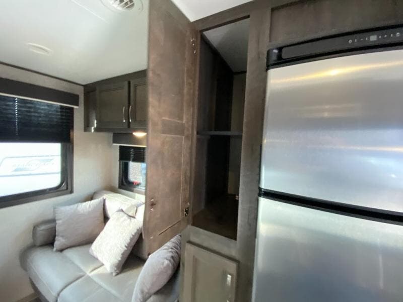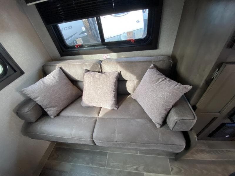 If you and your spouse wish to escape the hustle and bustle of everyday life then you need this travel trailer! You can create delicious home cooked meals with the three burner range with glass cover, and enjoy eating them comfortably at the booth dinette. The dinette and sofa can also double as extra sleeping spaces for a few to tag along and join in on the fun. Start each morning feeling refreshed and clean after sleeping on the front island queen bed and taking a nice, hot shower in the tub/shower which also has skylight above it for you to have natural lighting as you get ready!