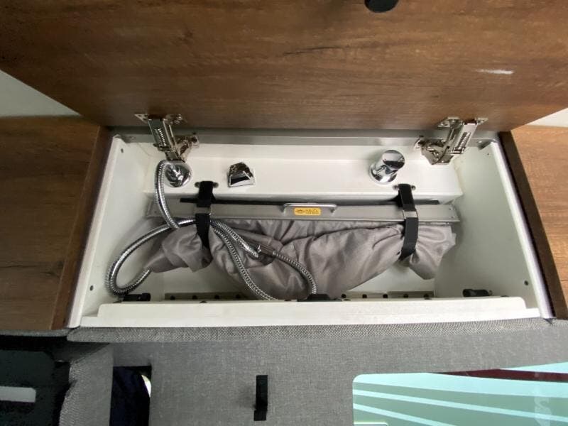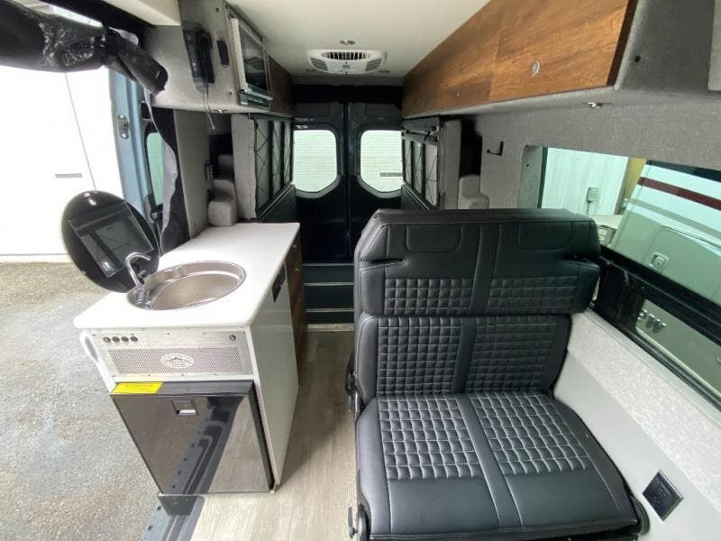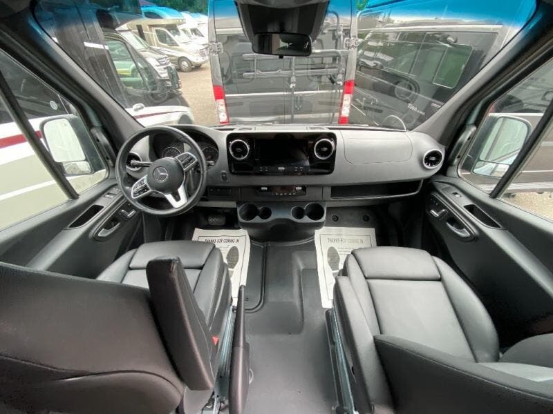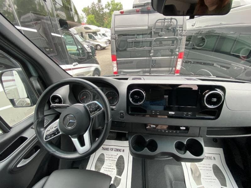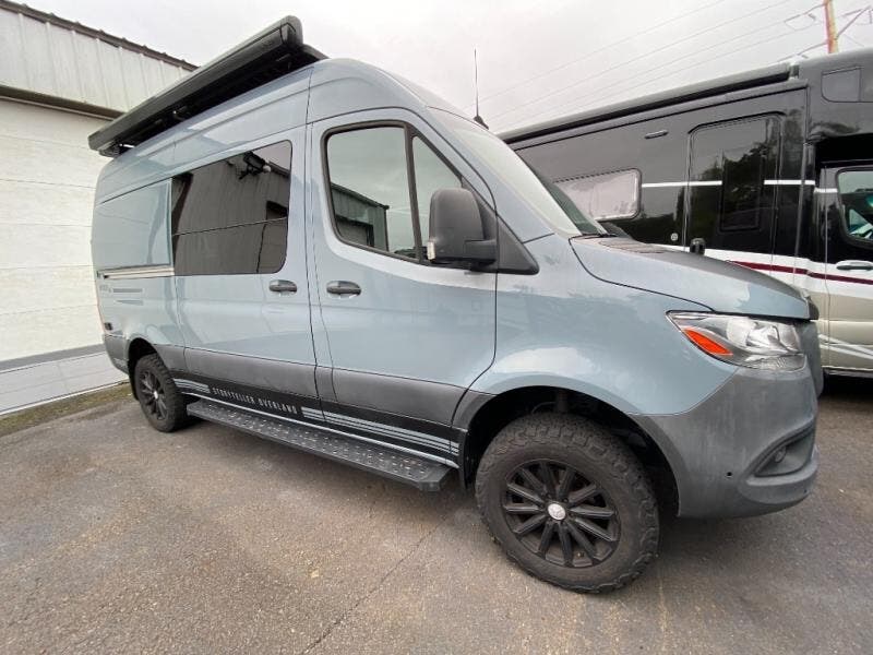 Let this Storyteller Overland AWD Class B diesel van with on-demand 4WD capabilities be your big story to tell! This model comes with everything you need wrapped up in a fun stealth graphics package! The custom emblems and Mercedes blue grey paint are an attractive base for the convenient features found inside, like the hot water recirculation system, the stainless steel microwave, the dimmable LED ceiling lights, the magnetic privacy shades, the swing-arm dinette table, and the heated/swivel cab seats. It will also be amazing to find a a 10" touchscreen MBUX multimedia system and smartphone wireless charging up in the cab area, and the portable induction cooktop is going to be extremely helpful for making meals when you're hungry. And, when you want to spend more time off-grid, the 12kWh M-Power Energy System that features a 3600w inverter will easily power your air conditioner all night long!