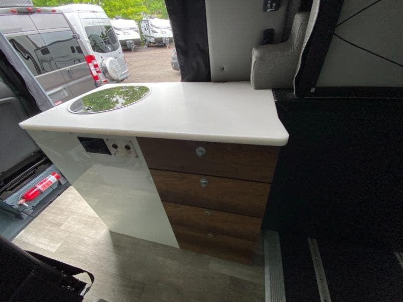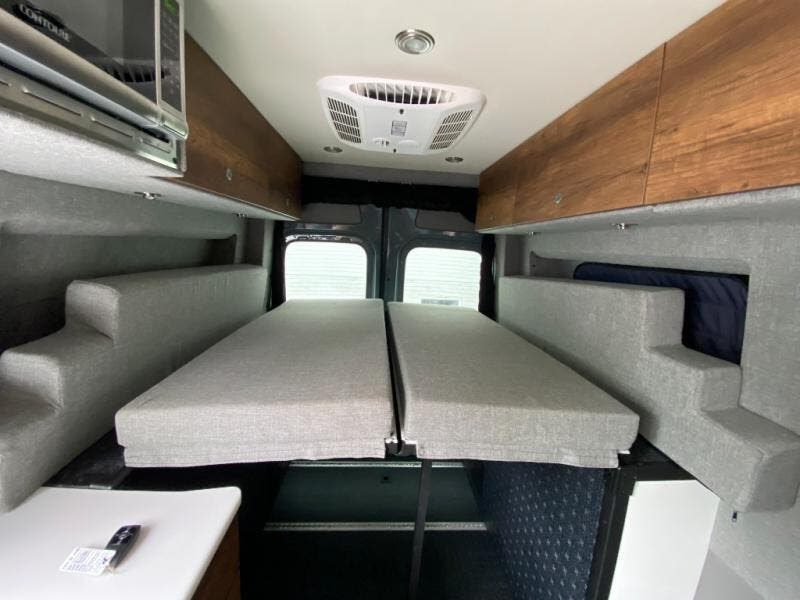 Live free, explore endlessly, and tell better stories with the Storyteller Overland Class B diesel van! With a 4x4 all-wheel drive and 3.0L V6 turbo diesel engine, the Storyteller Overland is always ready to go whenever you are! You can travel with complete peace of mind knowing that each van meets all of the qualifications for the various and rigorous safety tests, so it is safe. But the Storyteller Overland is also fun and rugged with its tubular side-mount ladder, rugged roof rack with sonic wedge deflector, powered awning with dimmable LED lights, portable toilet, outside shower, and portable Bluetooth speaker. With a fresh update for the new year, some of the items that you will now find on the Storyteller Overland are the increased counter space, a bigger and deeper sink, a more-efficient air conditioner, bug screens on the doors, and additional USB outlets.