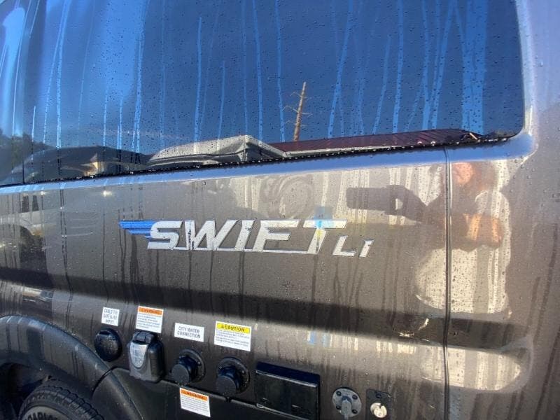 Enjoy the open road in this Swift Li coach with your favorite person. You'll love the Ultraleather swivel captain's seats for comfort and the leather-wrapped tilt steering wheel with integrated controls to keep your eyes on the road. The twin beds convert to a king bed for all-around comfort, and there is a 24" TV to watch movies in bed. You can prepare breakfast on the induction cooktop or in the convection microwave, and the 3 cu. ft. AC/DC refrigerator will be perfect for milk and eggs. This motorhome also includes plenty of storage space, including overhead cabinets and a large bathroom wardrobe for clothes and necessities.