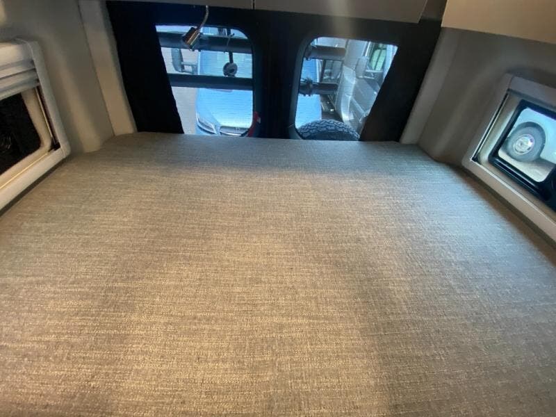 Calling all outdoor enthusiasts to explore the unknown sites, this camper van offers a couple the perfect motorhome to find those locations and setup camp! The two captain's chairs swivel for more inside seating once at your destination, and the rear sofa folds out to offer a 70" x 72" sleeping space. You can watch the 24" TV before bedtime, and get cleaned up in the wet bath. The kitchen amenities include a single door, electric refrigerator, a dual burner gas cooktop and a microwave oven, plus a solid surface countertop and stainless steel single bowl sink. You can even eat outside using the fold-out exterior table. And if you are not staying the night, the seatbelts on the rear sofa offer space for passengers. There are many more standard features and a few options to choose from, start exploring today!