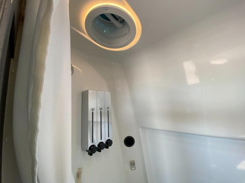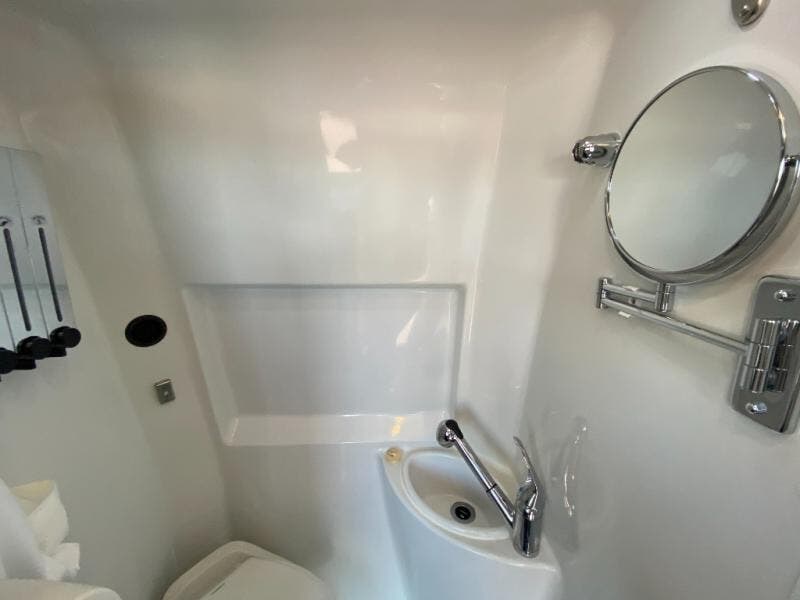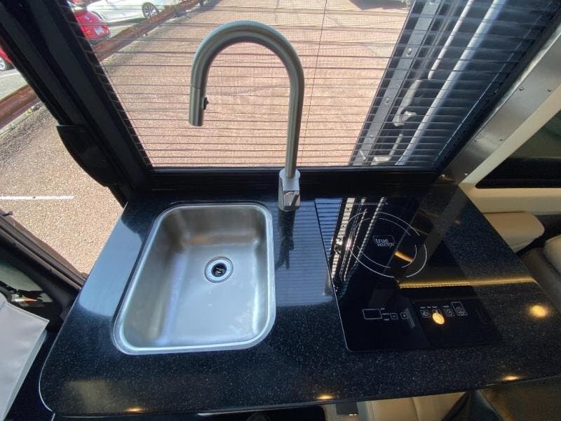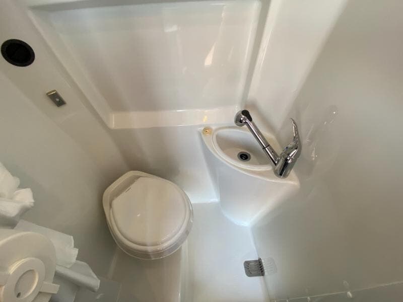 Your adventures are made complete in this nineteen foot coach that can sleep two comfortably. When you arrive at the campground, you can prepare lunch on the two burner gas cooktop, or use the convection microwave. There is also a slide out pantry and a 3.2 cu. ft. 12V refrigerator and freezer for your food storage. The rear sofa/bed and side seats convert to a lay-flat bed, giving you the largest best in its class, plus there is a convenient wet bath on board to stay clean throughout your trip.