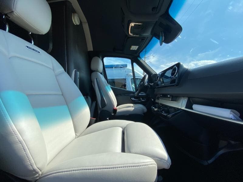 The Interstate Nineteen Class B diesel motorhome by Airstream is as nimble as it is luxurious. The Mercedes-Benz safety features will provide you with a peace of mind as you travel with precious cargo, and the smaller size will make it easier to drive and park. A Mercedes-Benz Sprinter 2500 chassis comes standard, but you can choose the four-wheel drive option if you plan to travel tougher terrain. There are two 100 Ah deep cycle lithium batteries and a 2.5 kW LP generator for all your power needs, plus unlimited hot water provided by the Truma Combi hot water heater. Head inside to find Ultraleather seating, power window shades, Airstream's signature aluminum ceiling and trim, plus a Corian countertop in the galley for added luxury. You will also love the interior decor options, including the Tommy Bahama special edition that features tropical graphics and tan seating for that island-style feel!