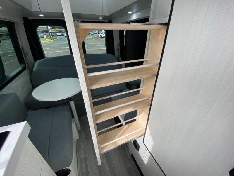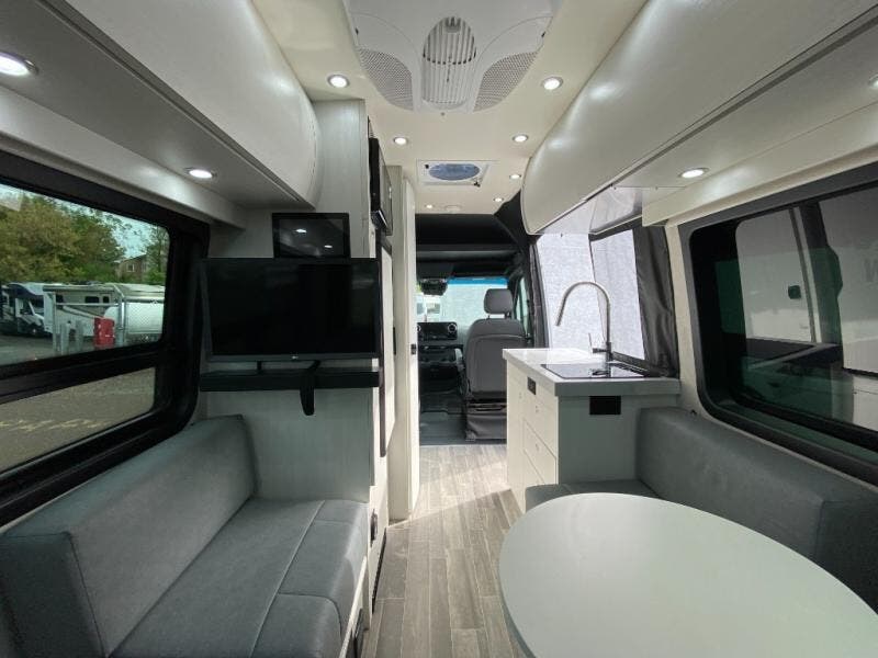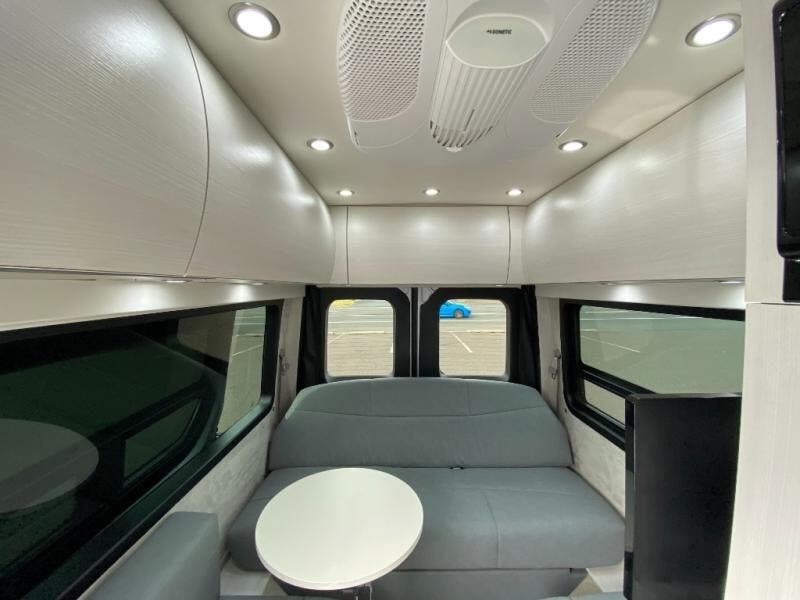 Whether you are ready to head out on a weekend camping trip or you are going to your kids' sporting events, this Ascent Class B diesel motorhome has the ideal accommodations for you. The rear power sofa with seat belts easily convert into twin beds or a 70" x 72" queen-size bed, plus the Lagun table mount system turns 360 degrees to allow you to position it just right. The wet bath is enclosed for your privacy, plus you will appreciate the handheld showerhead for easy clean-up. When you are ready to relax for a bit, sit and watch a show on the 24" Smart LED TV, or if you want to spend more time outdoors, enjoy the shade from the power awning!