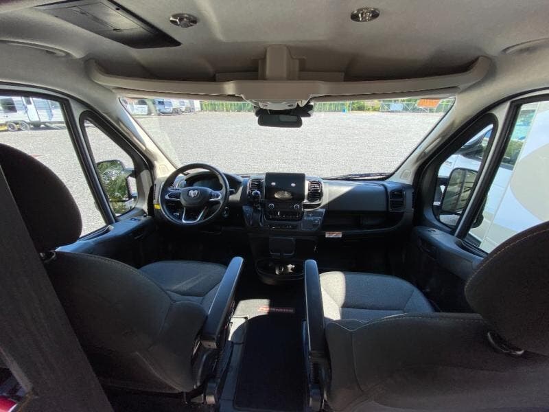 The Roadtrek Class B gas motorhomes are built upon the stylish Ram ProMaster 3500 chassis with a 3.6L V6 gas engine to power your trips near and far. The Uconnect 5 HD radio with Apple Car Play and Android Auto will make the drive just as sweet as the destination. Each model includes a 12V refrigerator, a two-burner recessed propane stove with a flush cover and built-in igniter, and ample storage space for all your belongings. The Firefly coach control system monitors the water, propane, battery charge levels, battery disconnect, and generator hour meter for your convenience. There are even solar panels to go off the grid, an outdoor shower to rinse the dirt off your feet before entering inside, and a retractable awning to protect you rain or shine. Come find your favorite one today!
