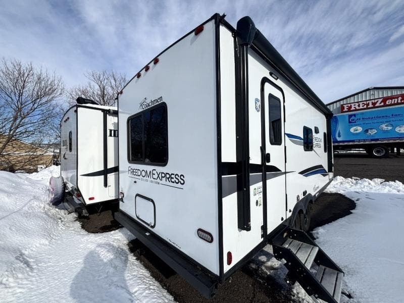 The used 2025 Coachmen RV Freedom Express Select 20SE offers a modern, lightweight design built for couples or small families seeking comfort and efficiency in an easy-to-tow travel trailer. With a smart single-slide layout, residential-style touches, and durable laminated construction, the 20SE delivers a practical blend of livability and long-term reliability for Pennsylvania campers. Whether you’re planning weekend getaways or extended seasonal stays, this Freedom Express Select provides the space, storage, and quality craftsmanship that make every trip feel simple, comfortable, and well within reach.