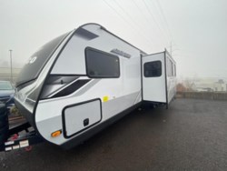This travel trailer with a full rear bath is sure to bring you comfort wherever you camp. The front private bedroom with queen bed and dual wardrobes will have you feeling right at home. You can enjoy home cooked meals while at the campsite thanks to the three burner cooktop and 11 cu. ft. 12V refrigerator, plus there is a walk-in pantry to store all of your favorite snacks. The tri-fold sofa and booth dinette within the slide out offer comfortable places to relax. You can even cook breakfast outdoors using the outside kitchen and stay protected from the elements by the 19' power awning!