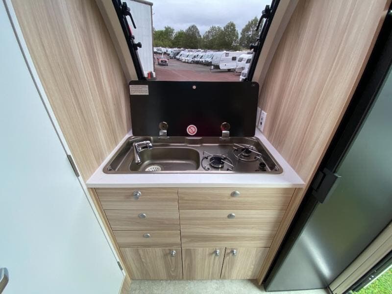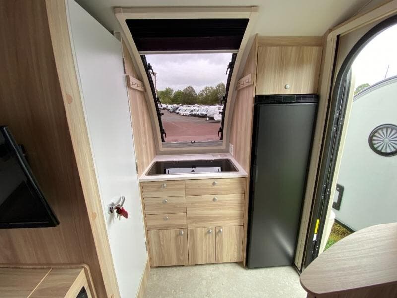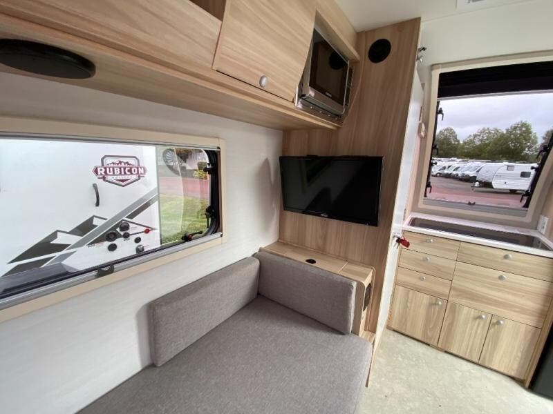 If you enjoy lightweight camping, this teardrop trailer is for you! Everything you need for trips to the lake will be right there with you, including a convenient wet bath with a cassette toilet. The twin bed set up gives you cozy sleeping space, and they can convert to a dinette on one side with extra seating on the other side! There are stargazer windows to give you great views of your surroundings, and the open floorplan will have you feeling right at home. A glass top sink and two burner cooktop combo will let you cook meals each day, and the 5.0 cu. ft. 12V compressor refrigerator will be perfect for perishables. If the optional Black Canyon upgrade is chosen, the tongue weight will be 386 lbs. and the gross dry weight will be 2,729 lbs. If the optional Classic Package is chosen, the tongue weight will be 389 lbs., and the gross dry weight will be 2,692 lbs. See dealer for more details!