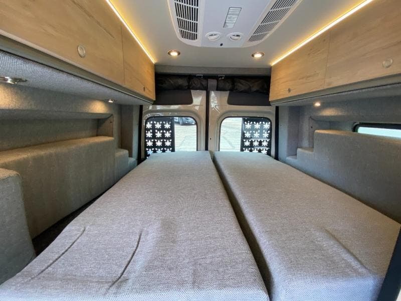 Live free, explore endlessly, and tell better stories with the Storyteller Overland Class B diesel van! With an all-wheel drive and diesel engine, the Storyteller Overland MODE XO models are always ready to go whenever you are! You can travel with complete peace of mind knowing that each van meets all of the qualifications for the various and rigorous safety tests, so it is safe. But the Storyteller Overland is also fun and rugged with its rugged roof rack with sonic wedge deflector, powered awning with dimmable LED lights, outside shower, and portable Bluetooth speaker. The BoomBox wet/dry bath/closet will allow you to take showers each day and also use this space as a drying closet since there are removable shelves, double opening doors, and a closet rod to name a few features. Additional features include an M-Power energy system powered by Lithionics, convenient bug screens, plus 110V outlets and USB ports to keep you charged up!