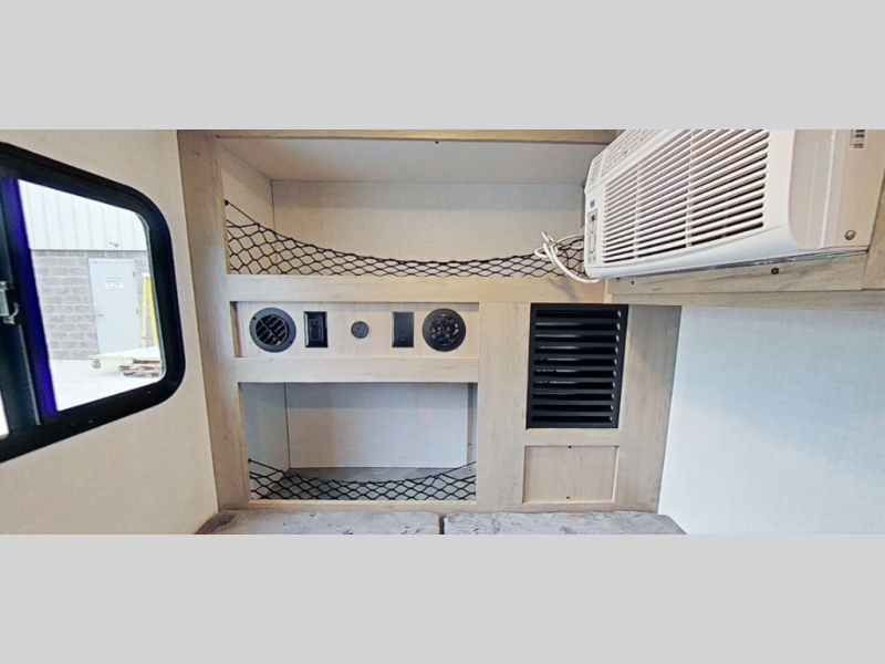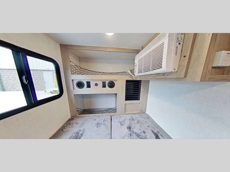 This compact travel trailer is easy to tow and easy to love! There are fender steps so that you can reach the top of your unit, which will especially be helpful if you choose to add the optional Thule roof rack system. You will also find a 6.5" manual awning outside or you can choose the optional batwing awning. The rear kitchen includes a griddle which attaches to the LP Quick Connect, a sink, plus an overhead shelf for food storage. An optional 1.7 cu. ft. refrigerator can be added for even more convenience. Inside, you'll enjoy the dual 28" x 84" mattresses with a converted 56" x 84" "California Queen" sleeping space for a great night's rest. There are also front overhead shelves with shelving below plus floor to ceiling shelves in the back so nothing gets left behind.