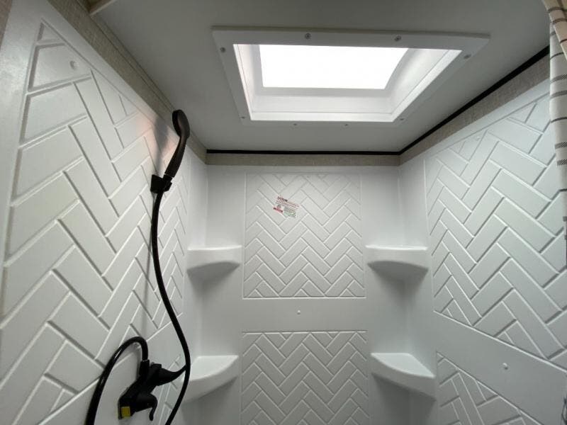 Comfort and fun is waiting for you! This trailer allows the owners to sleep in privacy behind the space saving sliding door on a 60" x 75" queen bed. And the kids or grandkids can sleep on the double-size bunks in the rear next to the full bathroom including a shower. They even have a wardrobe nearby for their things. The slide out jackknife sofa and U-shaped dinette offers more floor space, a place to relax and dine, plus you can play games at the dinette. This model also includes an exterior refrigerator so you can grab a cold drink while under the 16' power awning!