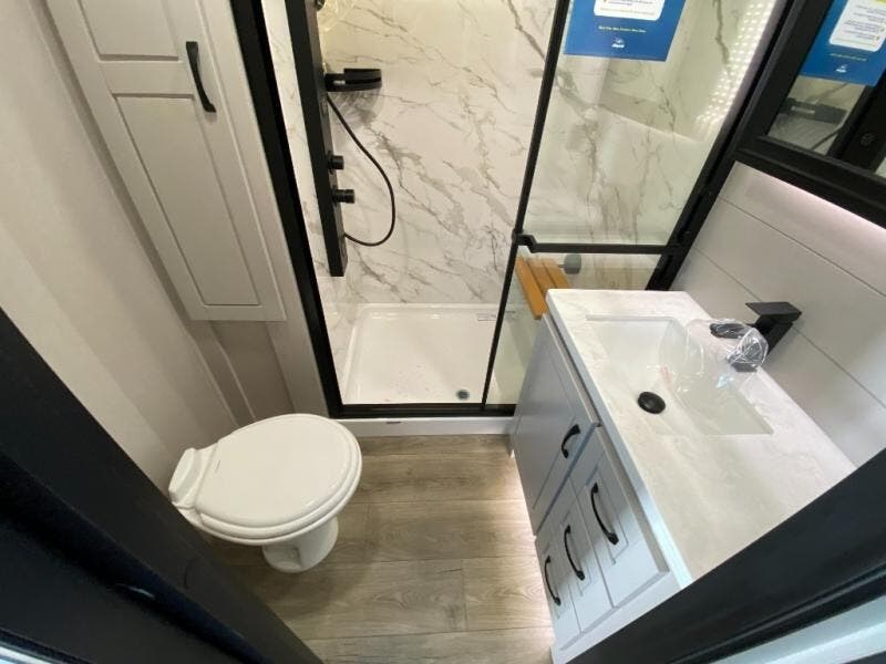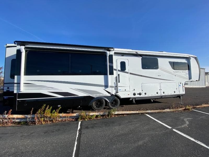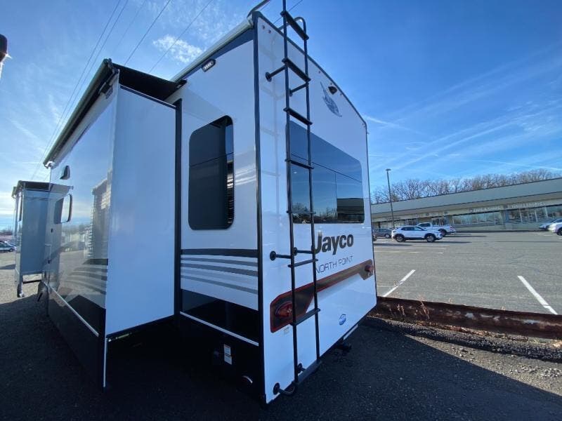 With any North Point fifth wheel by Jayco you begin with a strong foundation with a custom frame, designed and sized specifically to best support each unit. Constructed with Stronghold VBL™ aluminum framed, vacuum bond laminated walls and the Magnum Truss™ XL6™ roof system with an Alpha roof membrane system, which is the strongest tested roof in the industry. The 5-Star Handling package is included with Uniroyal tires, a MORryde rubber pin box, Dexter axles with Nev-R-Adjust brakes, MORryde CRE-3000 rubberized suspension and wet bolt fasteners and bronze bushings. The interior has handcrafted hardwood glazed doors and drawers, vinyl flooring throughout, an integrated under-mount sink in the main bathroom, plus so much more you just have to see one to believe it all!