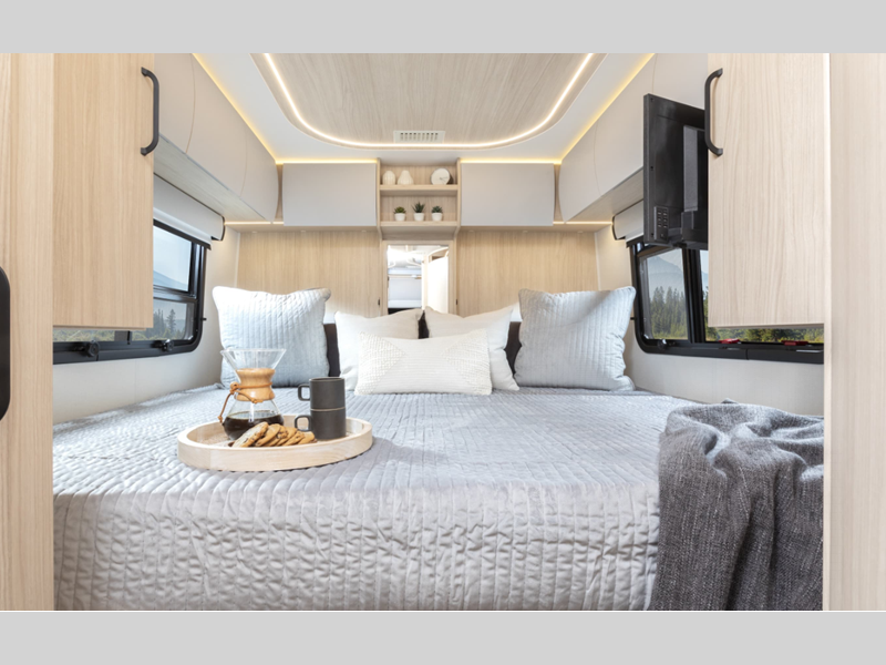 Each Unity Class B+ diesel motorhome by Leisure Travel sits on a durable Mercedes-Benz Sprinter 3500 dual rear wheel chassis with a 2.0-L Turbocharged I-4 diesel engine to power your adventures. The powder coated steel undercarriage support structure and vacuum-bonded construction provide a coach that will last for years, and there are eight sleek exterior paint options to make the coach your own. You'll love driving the Unity with its electronic stability control, adaptive cruise control, 9-speed automatic transmission with quieter noise levels and more comfort. There is even a digital mirror with sharp high-resolution that can be switched between convectional display and digital display for convenience. The luxurious interior includes Ultraleather furniture, a contoured solid surface Corian countertop in the kitchen, new decor options, plus many more comforts. And all of your power need will be met with 270-Ah, 12V Lithium coach batteries with an internal heating system, plus a 3000W pure sine inverter and a 30 Amp power cord. If you choose the optional 60th Anniversary Edition, you will enjoy the Diamond White exterior paint, diamond-quilted upholstery, Cool Ice Ultrafabrics, matte black hardware, and more elegant features that are exclusive to this package!