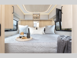 Each Unity Class B+ diesel motorhome by Leisure Travel sits on a durable Mercedes-Benz Sprinter 3500 dual rear wheel chassis with a 2.0-L Turbocharged I-4 diesel engine to power your adventures. The powder coated steel undercarriage support structure and vacuum-bonded construction provide a coach that will last for years, and there are eight sleek exterior paint options to make the coach your own. You'll love driving the Unity with its electronic stability control, adaptive cruise control, 9-speed automatic transmission with quieter noise levels and more comfort. There is even a digital mirror with sharp high-resolution that can be switched between convectional display and digital display for convenience. The luxurious interior includes Ultraleather furniture, a contoured solid surface Corian countertop in the kitchen, new decor options, plus many more comforts. And all of your power need will be met with 270-Ah, 12V Lithium coach batteries with an internal heating system, plus a 3000W pure sine inverter and a 30 Amp power cord. If you choose the optional 60th Anniversary Edition, you will enjoy the Diamond White exterior paint, diamond-quilted upholstery, Cool Ice Ultrafabrics, matte black hardware, and more elegant features that are exclusive to this package!
