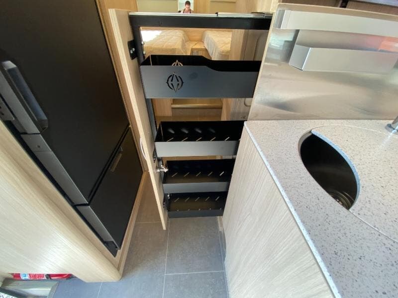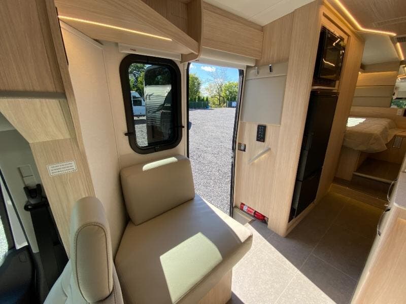 - Exterior LadderFront Dinette inflatable MattressGlamour Matte Bianco White Fenix upper cabinet doorsLithium Upgrade - Additional 270-A 12-V smart lithiumRemote Key Fob EntrySatellite - Auto Acquisition Winegard Road Trip 4Solar Panels - Rigid Low Profile with control panel - 400WMacerator - Termination with Manual Disconnect