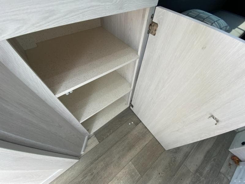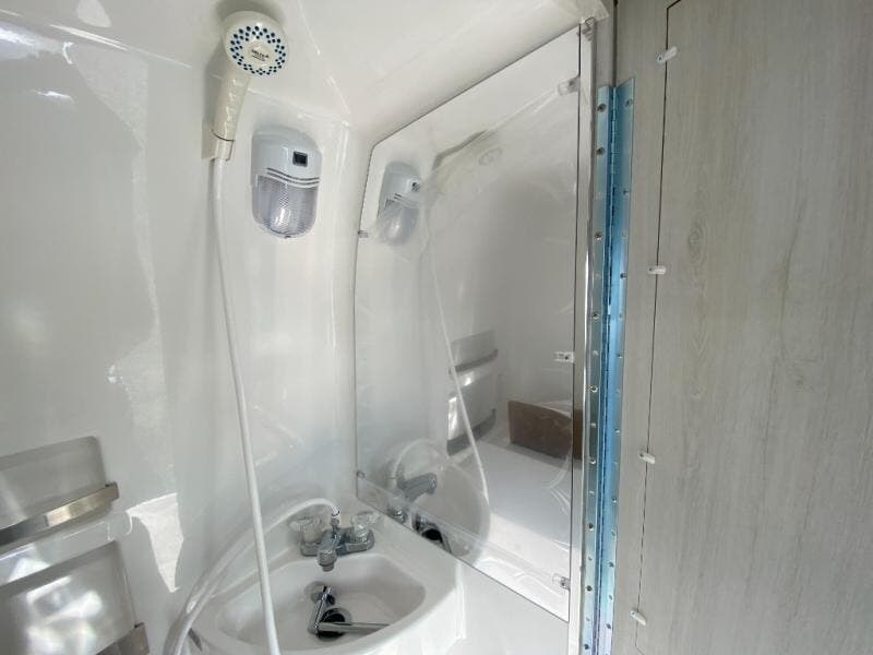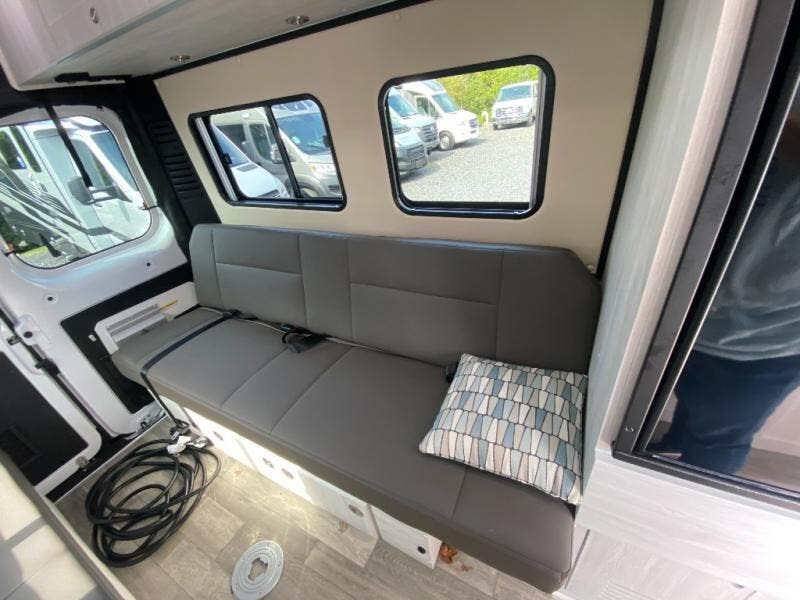 Whether you need more space for your bicycles, gear, or luggage, you will love the open-concept layout of the Zion coach. Each morning you can prepare breakfast on the two-burner propane stove, or use the convenient microwave oven. Head out to find a trail or two, and the wet bath will be waiting for you when you return. The countertop extension with a charging station will provide a place to download your pictures from your hike, and there is a slide-out pantry to grab a snack to hold you over until dinner. The side-facing rear power sofas easily convert to twin beds or a king-size bed for your comfort.