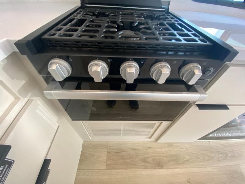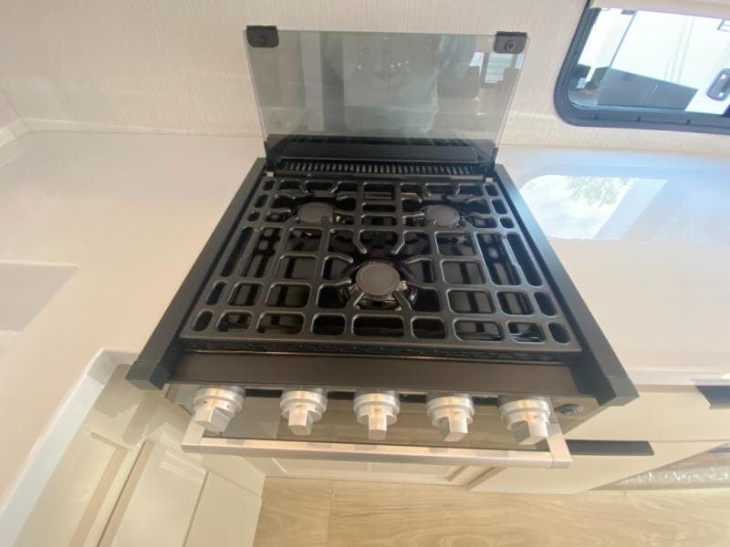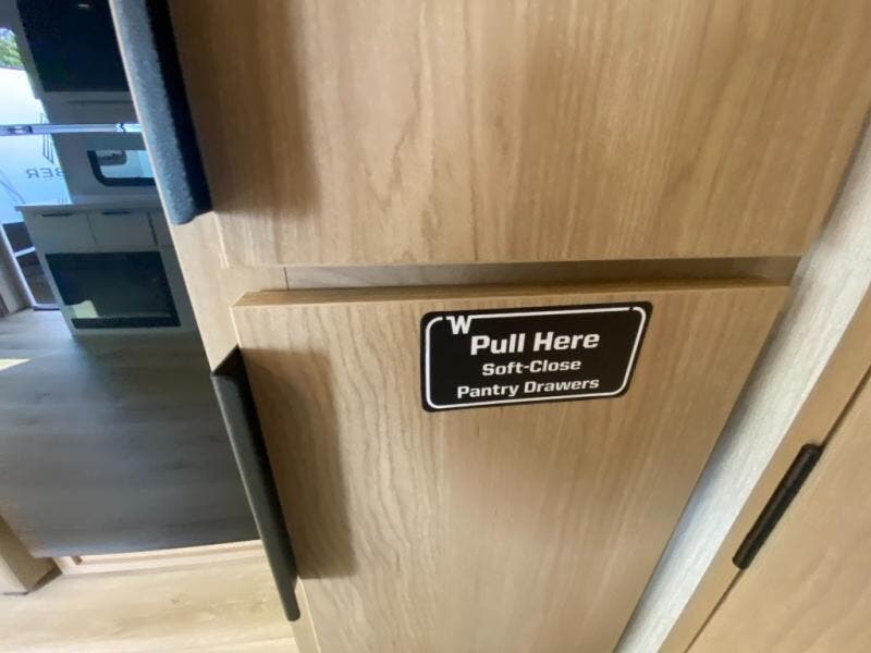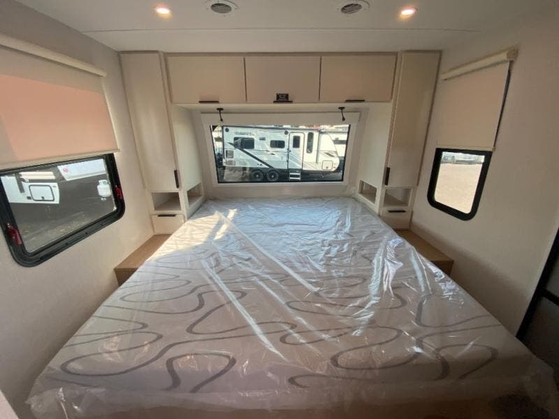 With any Thrive travel trailer by Winnebago, you can camp with functionality, comfort, and convenience! The large front viewing window with strike guard will be the first thing that catches your eye, and the fiberglass sidewalls with Azdel Onboard provide a durable trailer made to last. There is also an exterior ladder, along with front radius profile lights, power stabilizer jacks, and a powered awning with LED lighting to name a few exterior features. You will stay powered up by the 30-amp power cord and 200-watt solar panel, plus there is a tankless water heater for endless hot showers. Inside, you'll love the custom Winnebago furniture, carpetless side outs, molded fiberglass countertops, and residential recessed ceiling lights to keep your space well lit!