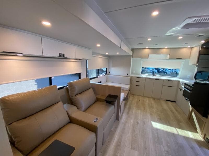 Modern Interior – Contemporary décor, LED lighting, durable vinyl flooring, and upgraded furniture provide residential-style comfort on the road.